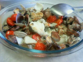 アサリと魚とトマトのダシっていうんでしょうか、スープがウマイ。